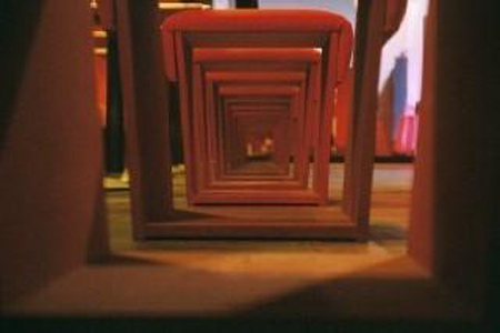Die Hocker sollten praktisch und leicht verstaubar sein, also entwarf ich leicht stapelbare Hocker, unter denen man als Gast seine Utensilien gut verstauen konnte.